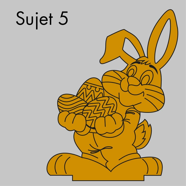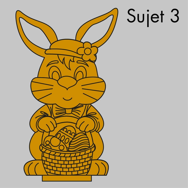 ca. 15 cm hoch. Osterhase dreidimensional. Elemente müssen zusammengeklebt werden. Mit Standfuss. 3 mm Sperrholz. Kann auch bemalt werden.